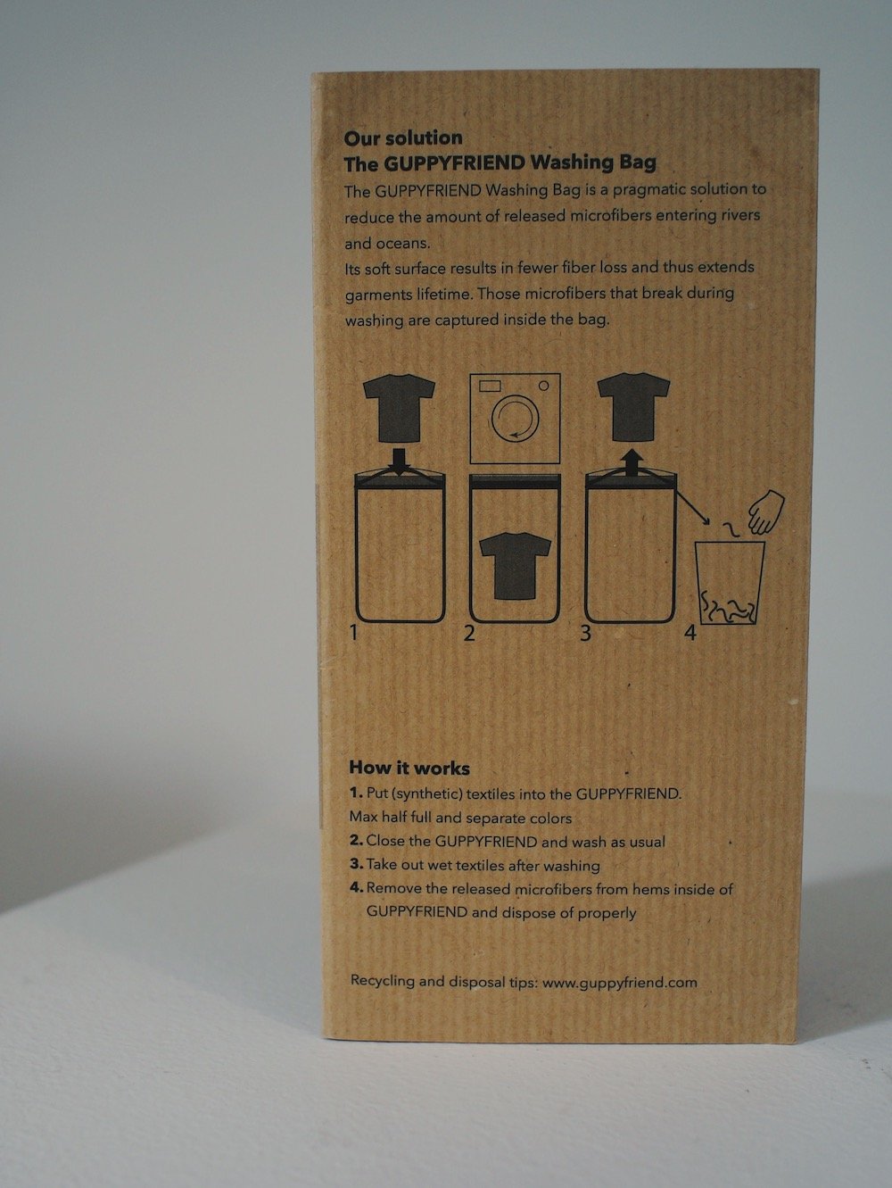When we wash synthetic garments, tiny plastic fibers are released and make their way from the washing machine to our waterways. The GUPPYFRIEND Washing Bag protects synthetic garments and reduces the number of microfibers that get flushed through washing machines and that eventually may enter our rivers and oceans. The inside of the bag is slick—even where the tiny threads cross—this leads to reduced abrasion and breaking of fibers. The clothes in the bag undergo less mechanical stress and less friction with other clothes, which leads to decreased fiber loss and a longer lifetime of the textiles. If you use the GUPPYFRIEND Washing Bag, you’ll find fewer fibers in the washing machine compared to washing without GUPPYFRIEND. After washing garments in GUPPYFRIEND, remove the microfibers from the bag and dispose of them by throwing them away in the trash. Features A single-compartment washing bag made of 100% polyamide with a slick interior Fully recyclable 50 x 70 cm (19 11/16” x 27 9/16”) 65 g (2.3 oz)
