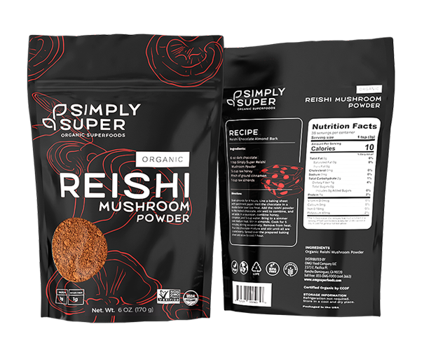 Simply Super Organic Reishi Mushroom Powder Known as one of the most popular and beneficial types of fungi, we gently grounded reishi mushrooms into a smooth powder. Detoxify at the end of a long week using the earthy taste of Simply Super Reishi Powder. 100% Certified Organic | Vegan | Kosher | Gluten-free Key Nutrients: Potassium and Dietary Fiber How to Use: Tea: Craft a slightly bitter detox tea using reishi powder.