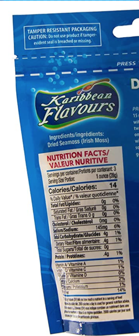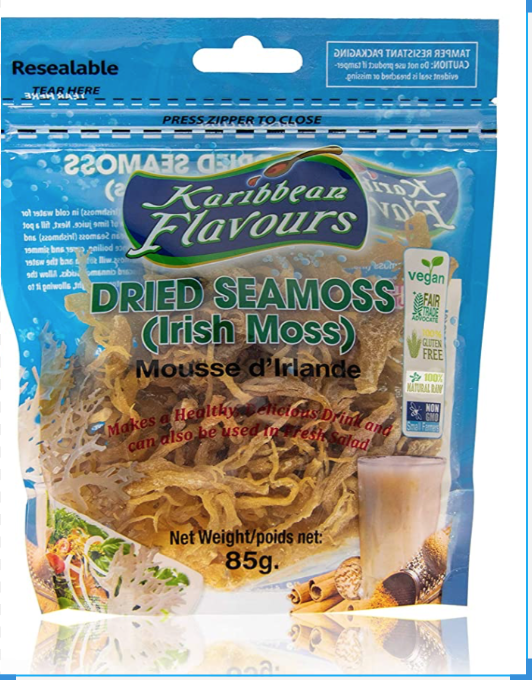 Sea Moss/ Irish Moss 85g BOOSTS IMMUNE SYSTEM - Said to aid in a healthy immune system. Reduces mucous congestion. Contains natural compounds to help get rid of infections and much more. REAL WILDCRAFTED in open sea coastal inlets - Marine Protected Area - Non-GMO Small Farmer harvested Fair Pay Advocate. Prepared in a USDA Certified Facility. REAL IRISH MOSS SUPERFOOD - Vegan - Gluten Free - RAW - provides fiber & trace minerals. REALLY HEALTHY - loaded with Potassium, Calcium, Iodine and Natural Vitamins A, B, D, E & K. REALLY NATURAL vegan gelatin substitute. Comes salted with almost NO sea smell.