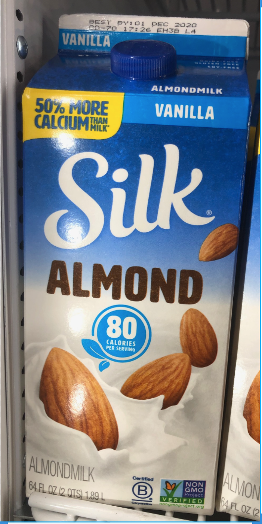 Ingredients: Almond milk (Filtered Water, Almonds), Cane Sugar, Vitamin & Mineral Blend (Calcium Carbonate, Vitamin E Acetate, Vitamin A Palmitate, Vitamin D2), Sea Salt, Locust Bean Gum, Gellan Gum, Ascorbic Acid (to protect freshness), Natural Flavor. IN STORE ONLY