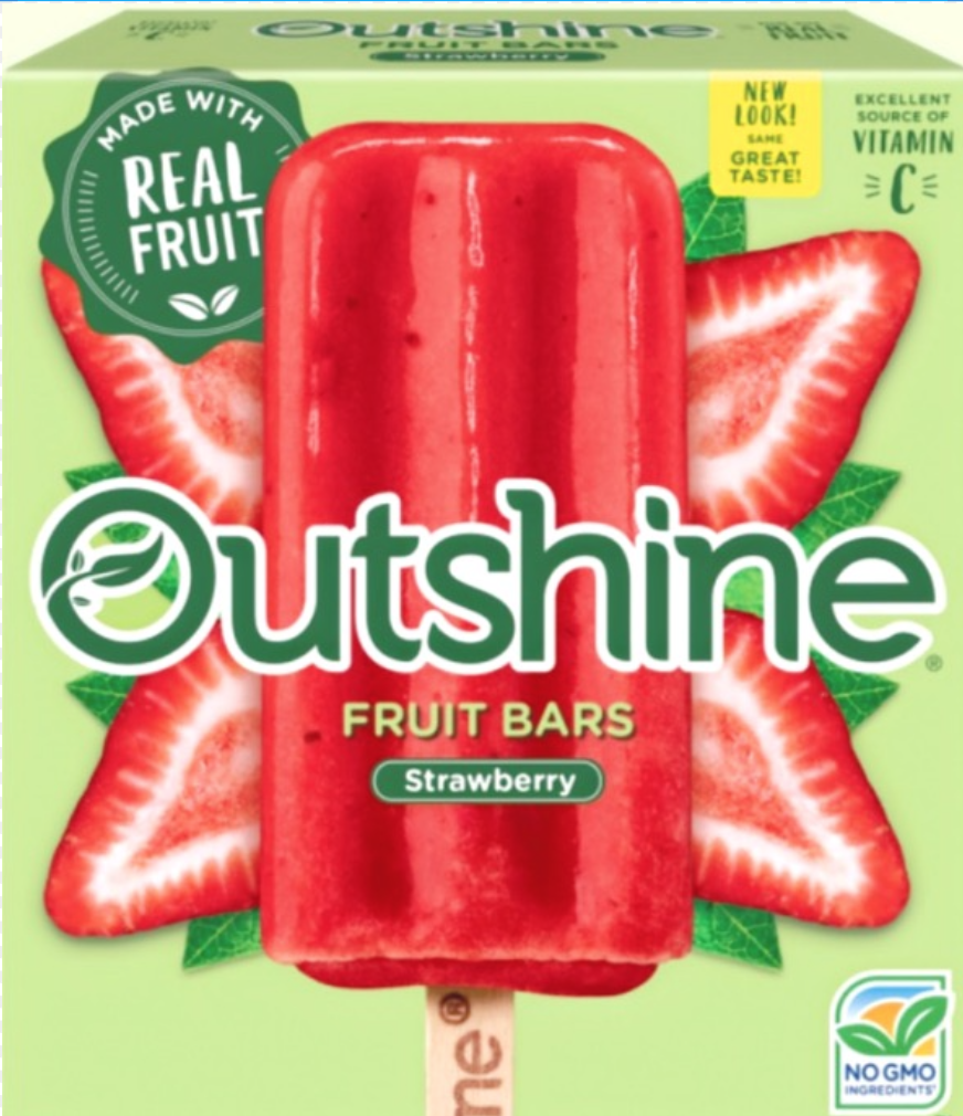 Outshine Strawberry 6 Count Get ready to Snack Brighter. Outshine & Outgive: We know just how essential fruits and veggies are. They're an important part of a healthy lifestyle and can help you live a better life. That's why we use real fruits and veggies in our products. It's also why we work with local food banks to bring fruits and veggies to communities that need better access to fresh produce. That's our promise.
