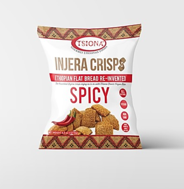 Ethipian Spicy Injera Crisps Our Flavor packed Injera Chips / Crisps Spicy is addictive! Ethiopian Flat Bread Re-Invented. INGREDIENTS: Injera: Enriched Self Rising Wheat Flour (Wheat Flour, Niacin, Iron, Thiamin Mononitrate, Riboflavin, Folic Acid, Salt, Monocalcium Phosphate, Baking Soda, Barley Flour, Teff Flour, Water, Canola Oil and/or Sunflower Oil, Garlic, Salt, Paprika, Mitmita (Birdeyes Chili Peppers and Cadamom), and Other Spices.