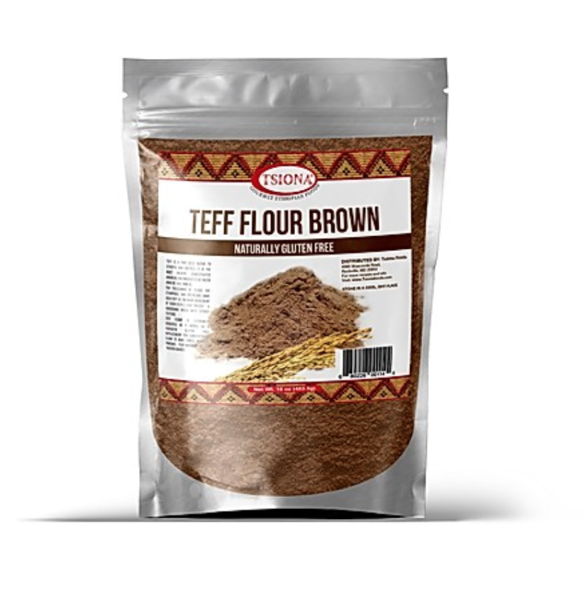 East African Brown Teff Flour TEFF is a tiny seed native to Ethiopia and Eritrea. It is the most ancient domesticated grain having originated between 4000 BC and 1000BC. Teff is a pleasingly light, uniquely flavored, 100% Whole grain flour. For thousand of years the Ethiopians and Eritreans have used Teff as the main ingredient of their staple food “INjera” - a sourdough bread with spongy texture. Teff flour is extremely versatile as it works as a fantastic gluten free replacement for conventional flour to bake cakes, muffins, pancake, flat-breads & brownies, or use as a thickening of soups and sauces. Store in a Cool & Dry place.