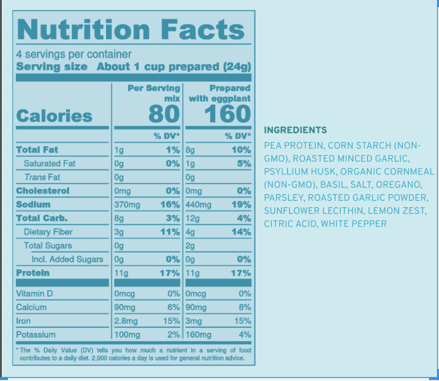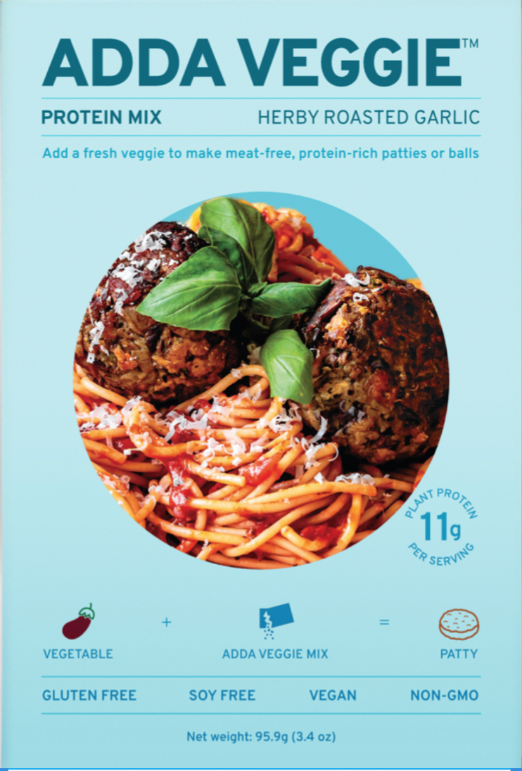 Adda Veggie Protein Mix includes everything you need to make protein-rich, flavor-packed veggie patties or balls. Just add fresh veggies! Our Herby Roasted Garlic mix is packed with zesty herbs and a punch of garlic. Perfect for Italian and Mediterranean style dishes. Works great with eggplant, cauliflower, zucchini and more! Each pack of Adda Veggie makes four 4-oz patties. Each serving contains 11g of plant protein. All of our products are soy-free, gluten-free, non-GMO and vegan.