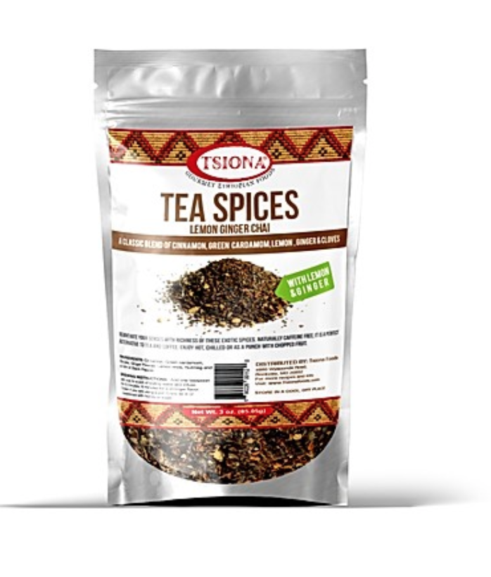 Tea Spices with Lemon Ginger Blend A Classic Blend of Cinnamon, Green Cardamon, Lemon, Ginger and Cloves Rejuvenate your senses with the richness of these exotic spices, Naturally Caffeine free. It is a perfect Alternative to Tea and Coffee. Enjoy Hot or Chilled.